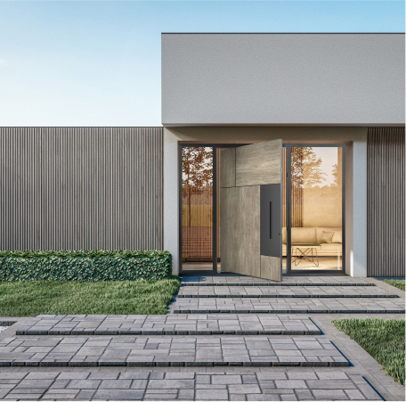 Model PIVOT 14 urzeka minimalistycznym designem, który doskonale prezentuje się na rozszerzonej powierzchni wypełnienia drzwiowego.
